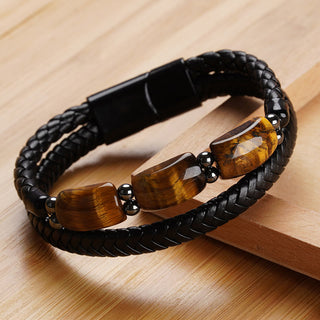 Buddha Gift Natural Tiger Eye Protection Willpower Magnetic Buckle Leather Bracelet