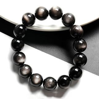 Buddha Gift Natural Silver Sheen Obsidian Soothing Protection Bracelet
