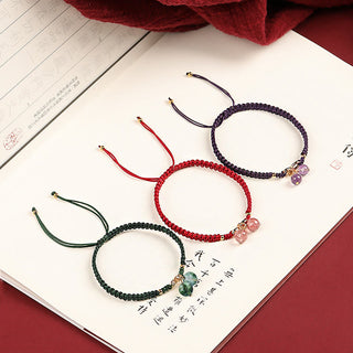 Buddha Gift Natural Strawberry Crystal Pixiu Charm Lucky Red String Bracelet