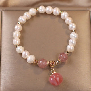 Buddha Gift Natural Pearl Strawberry Quartz Peach Love Heart Wisdom Charm Bracelet