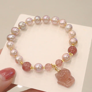 Buddha Gift Natural Pearl Strawberry Quartz PiXiu Optimism Charm Bracelet