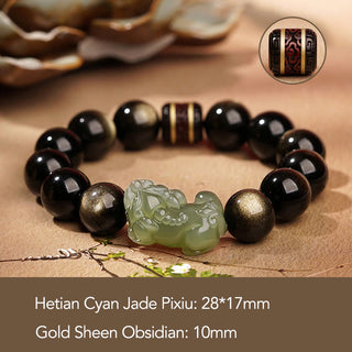 Buddha Gift Natural Gold Sheen Obsidian Hetian Cyan Jade White Jade PiXiu Wealth Bracelet