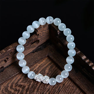 Buddha Gift Natural Cat's Eye Moonstone Strawberry Quartz PiXiu Support Bracelet