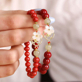 Buddha Gift Natural Cinnabar Jade Beaded Tridacna Stone Flower Blessing Bracelet