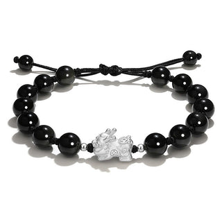 Buddha Gift Natural Black Obsidian PiXiu Tiger's Eye Strength Bracelet