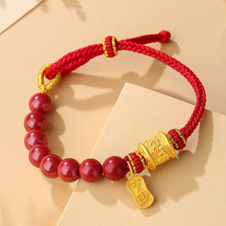 Buddha Gift 999 Sterling Silver Six True Words Om Mani Padme Hum Cinnabar Blessing String Bracelet