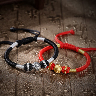 Buddha Gift 999 Sterling Silver Ruyi Stick String Protection Braided Bracelet