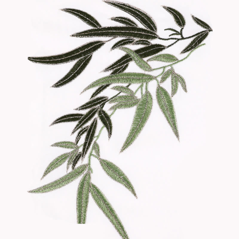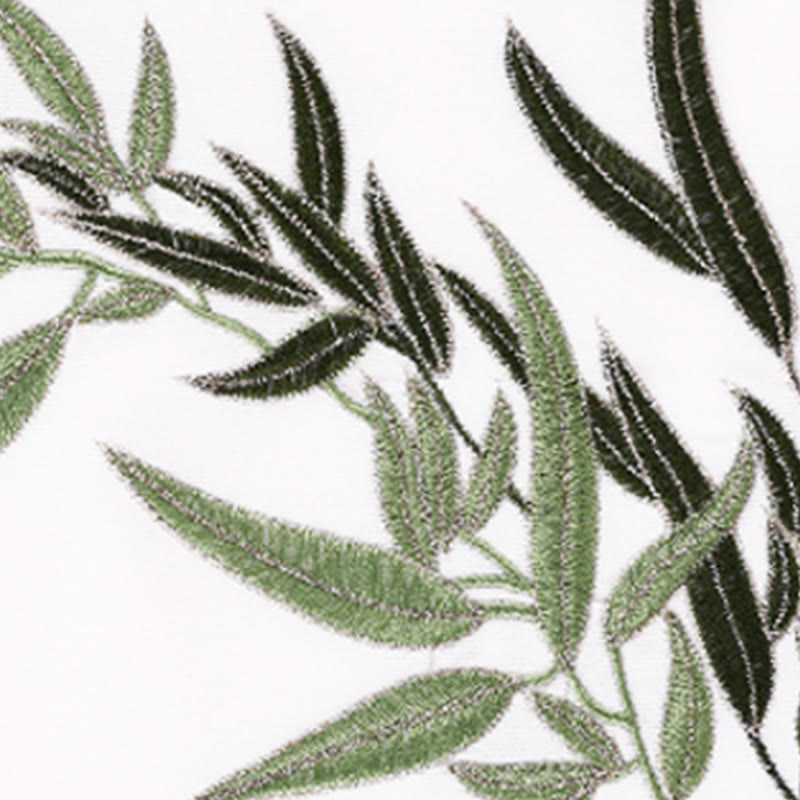 Buddha Gift 2Pcs Fall Green Bamboo Leaves Embroidery Frog-Button Tai Chi Meditation Qigong Zen Practice Unisex Cotton Clothing Set