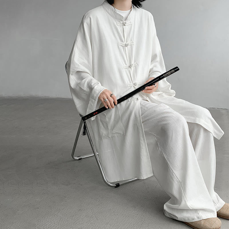Meditation Cotton Clothing Set features a long-sleeve frog-button shirt and matching pants, crafted from soft, breathable cotton. The loose fit ensures comfort and ease of movement, making it perfect for meditation or relaxation. Designed with a minimalist solid color and practical details, this set offers a blend of simplicity and functionality for peaceful moments.💕