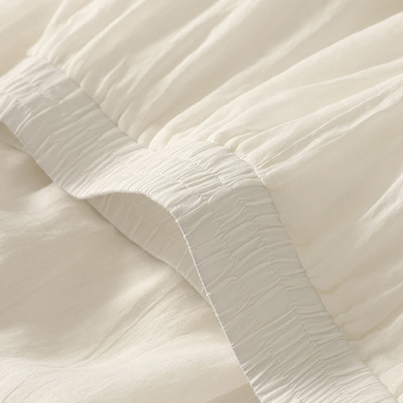 Buddha Gift 7-8 Length Elastic Waist Women's Wide Leg Cotton Linen Pants With Pockets