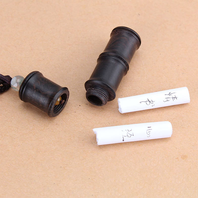 Buddha Gift Ebony Wood Bamboo Pattern Ghau Prayer Box Peace Necklace Pendant