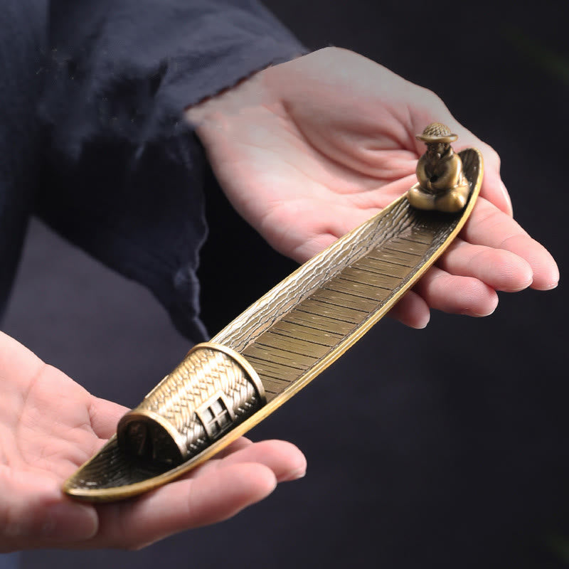 Buddha Gift Fisherman Boat Alloy Incense Stick Holder Healing Incense Burner Decoration