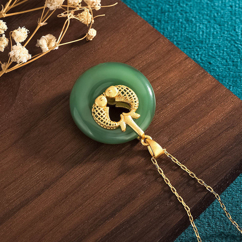 Buddha Gift Cyan Jade Koi Fish Luck Necklace Pendant